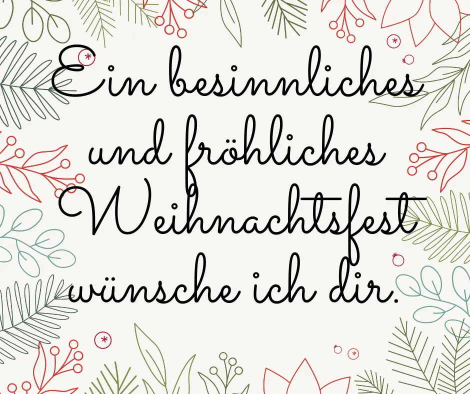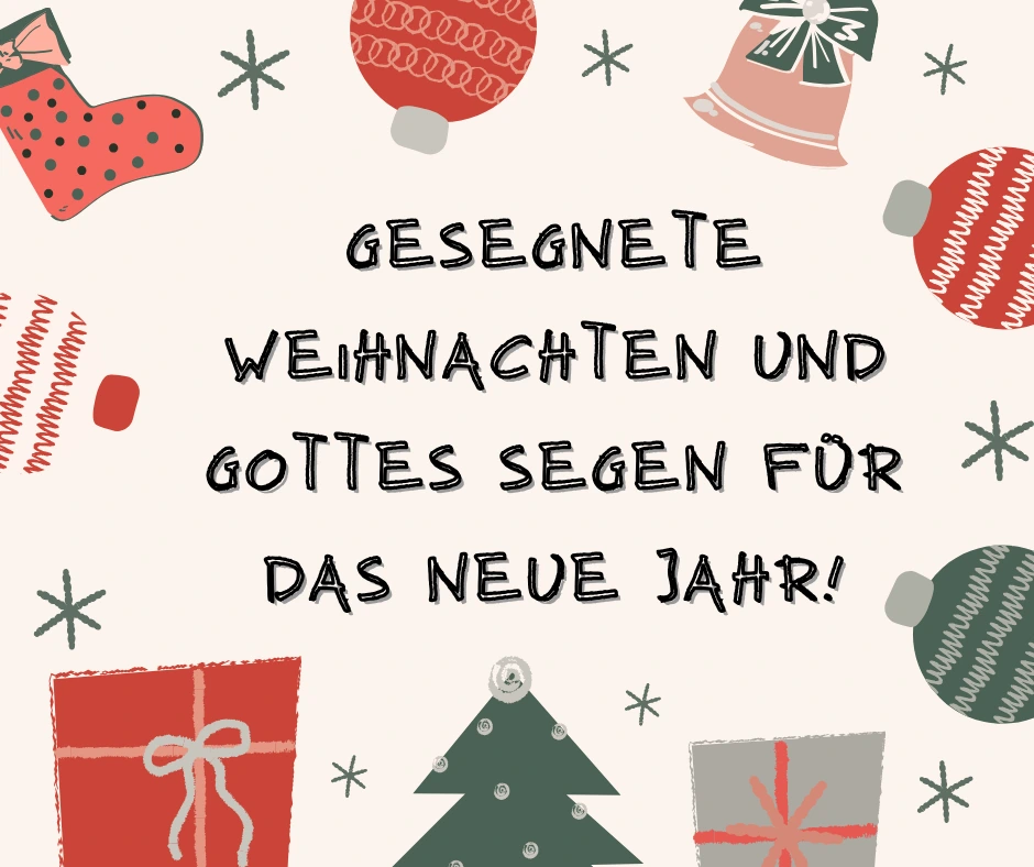 Ich wünsche dir frohe Weihnachten und ein glückliches neues Jahr! 🎅🎉 Ich hoffe, du hast eine erholsame Ferienzeit – du hast es dir verdient. 🌟